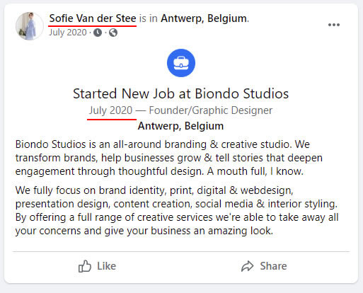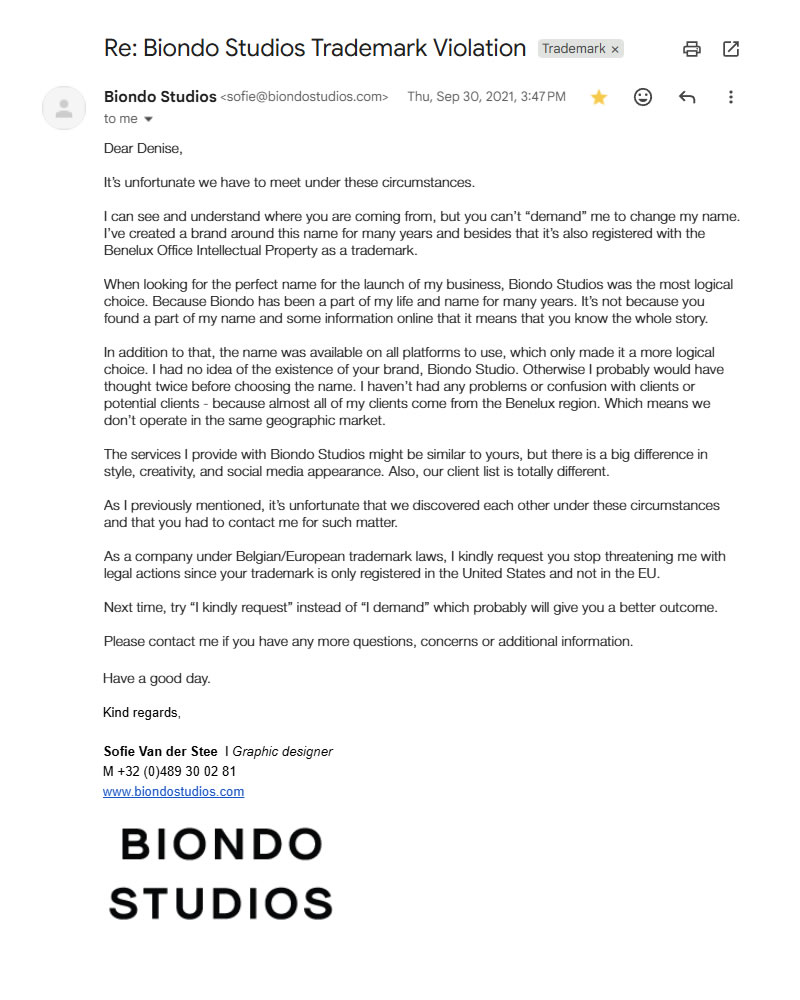 Public Identity Disclosure: Sofie Van Der Stee (aka 'Sofie Biondo') and the Biondo Studio Trademark.
